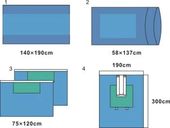 1. Various configurations in the disposable surgical pack are made of medical laminated film non-woven fabric and medical non-woven fabric.